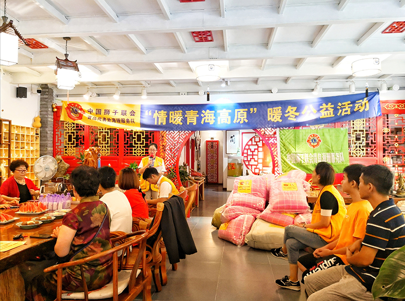 2019年8月11日上午10点,由中国狮子联会青岛代表处海珊服务队主办,簡小葉食品承办,“情暖青海高原”暖冬公益活动,在簡小葉品牌形象店(全国总店)隆重举行。来自中国狮子联会青岛代表处海珊服务队的7位狮友,簡小葉食品的15位爱心简粉代表,参加本次公益活动。